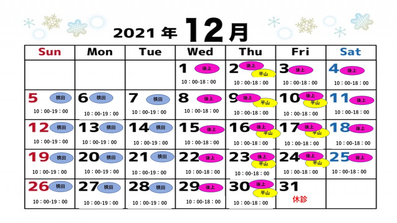 12月獣医師勤務表・診療時間